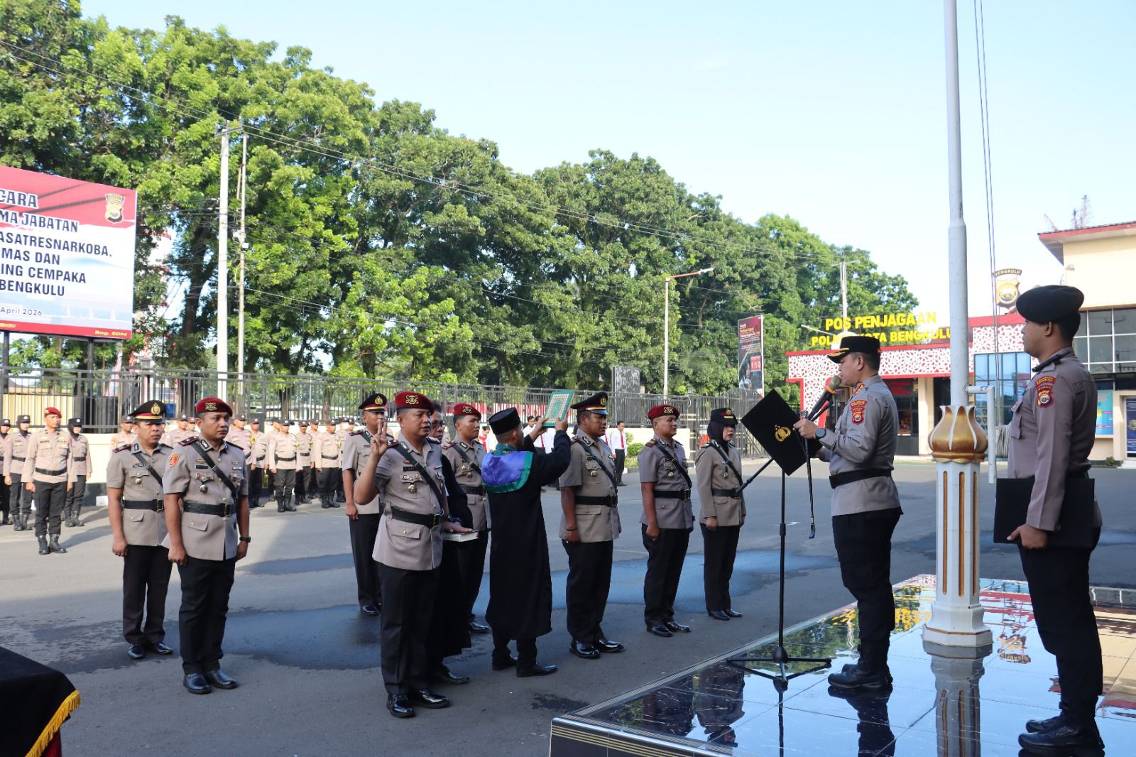 Dalam sambutannya, Kapolresta Bengkulu menjelaskan bahwa pelaksanaan sertijab ini berdasarkan Surat Telegram Kapolda Bengkulu Nomor: KEP/60/IV/2026 tanggal 8 April 2026 tentang pemberhentian dan pengangkatan dalam jabatan baru di lingkungan Polda Bengkulu.