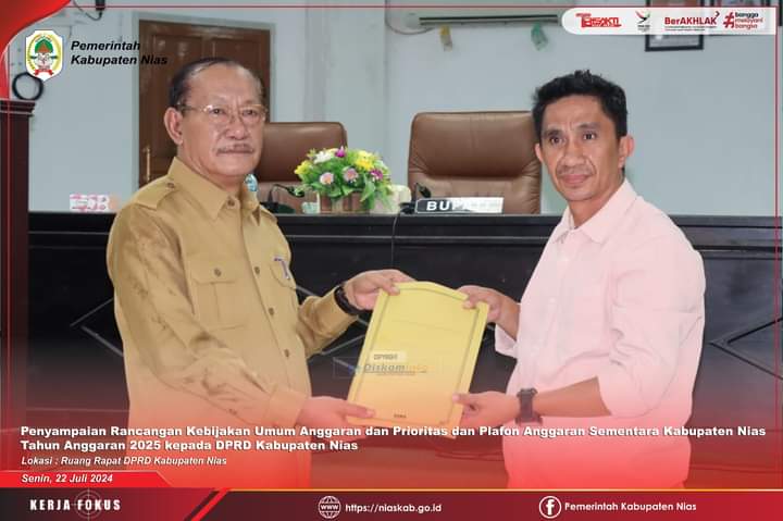 Wakil Bupati Nias Arota Lase, A.Md menyampaikan bahwa Rancangan Kebijakan Umum APBD Kabupaten Nias Tahun Anggaran 2025 disusun dengan memperhatikan kondisi ekonomi makro daerah, asumsi penyusunan APBD, kebijakan pendapatan, kebijakan belanja daerah, kebijakan pembiayaan daerah dan strategi pencapaian, yang memuat langkah-langkah konkrit dalam mencapai target kondisi ekonomi makro daerah, asumsi penyusunan APBD, kebijakan pendapatan daerah, kebijakan belanja daerah dan kebijakan pembiayaan daerah.