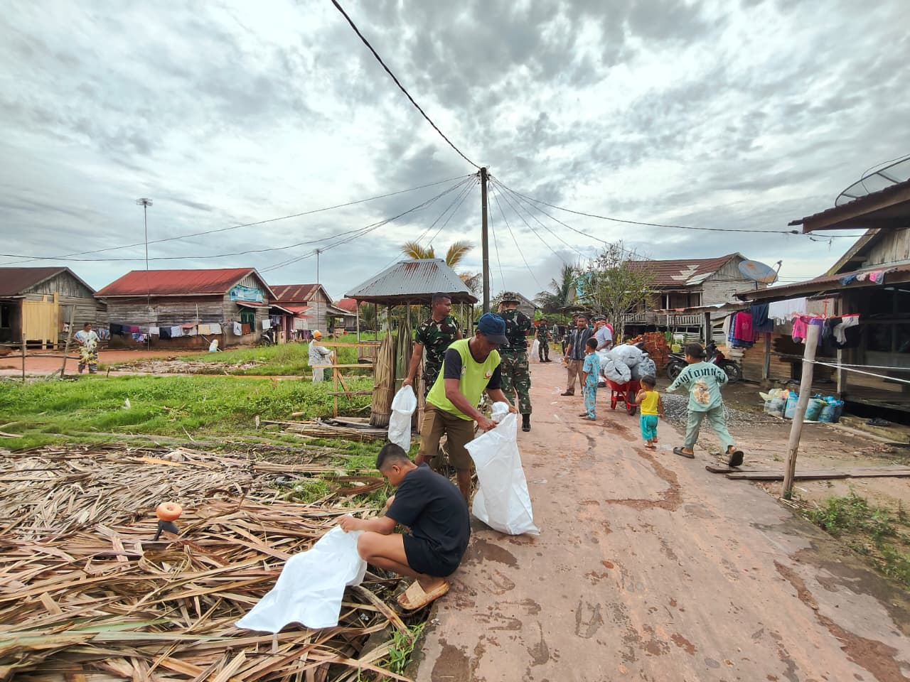Kegiatan karya bakti ini melibatkan personel Satgas TMMD bersama warga setempat. Mereka bergotong royong membersihkan area sekitar Jalan Desa Pinang Banjar, memangkas rumput liar, dan memperbaiki fasilitas yang ada di lingkungan tersebut.