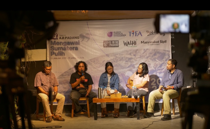 Ketua AJI Padang, Novia Harlina dalam sambutannya menegaskan bahwa tema “Mengawal Sumatra Pulih” dipilih bukan sekadar slogan, melainkan sikap pers dalam arti etik berpihak pada keselamatan rakyat dan keberlanjutan lingkungan.