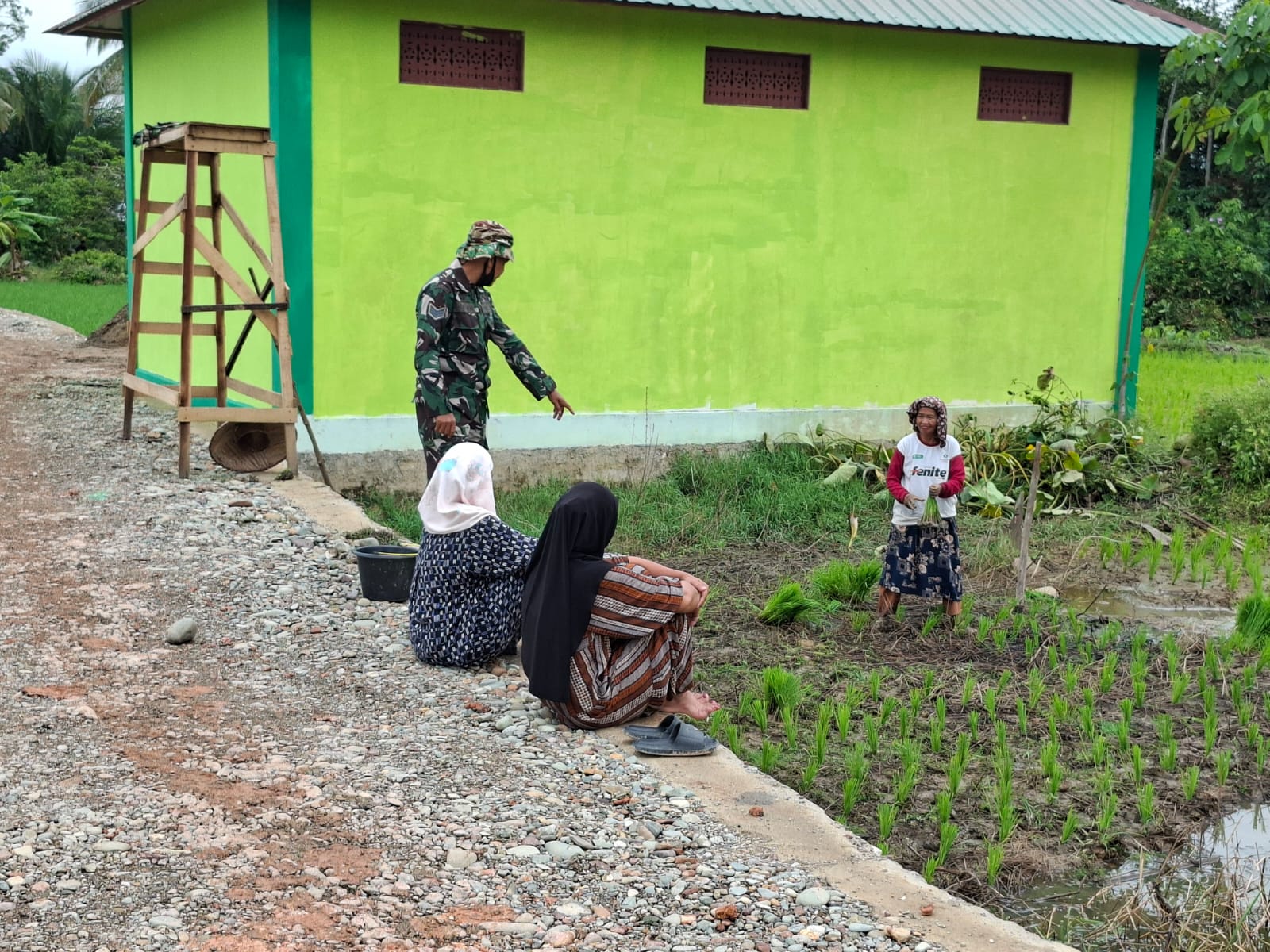 Dalam kesempatan tersebut, anggota Satgas TMMD berdialog langsung dengan para petani untuk mendengarkan berbagai aspirasi dan kendala yang dihadapi di sektor pertanian, mulai dari kebutuhan sarana produksi, kondisi irigasi, hingga akses jalan usaha tani. Selain itu, personel Satgas juga memberikan motivasi serta semangat kepada para petani agar terus meningkatkan produktivitas pertanian.