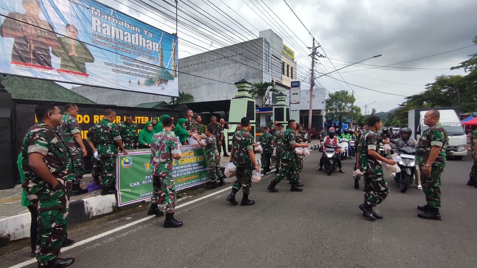 Takjil tersebut dibagikan kepada pengendara sepeda motor dan kendaraan roda empat, serta masyarakat pejalan kaki yang melintas didepan Makodim, Selasa (24/2/202).