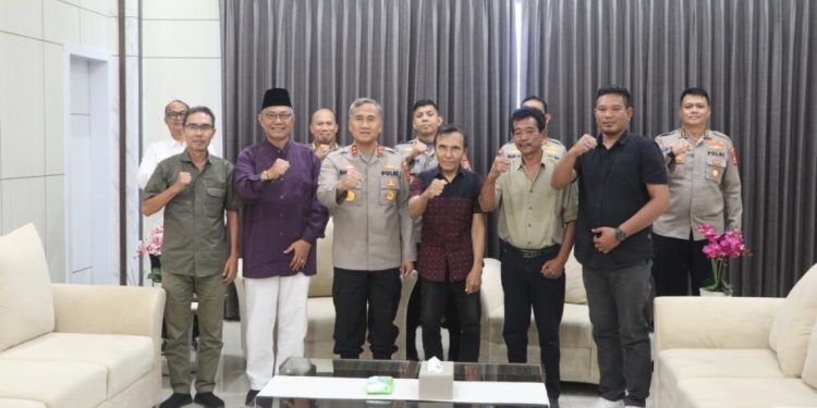 BENGKULU – Kapolda Bengkulu Irjen Pol. Mardiyono, S.I.K., M.Si. menerima silaturahmi dari Keluarga Kerukunan Tabut (KKT) Bencoolen Provinsi Bengkulu dalam rangka koordinasi persiapan pengamanan pelaksanaan Festival Tabot Tahun 2026. Kegiatan silaturahmi tersebut berlangsung pada Senin, 23 Februari 2026, sekitar pukul 14.30 WIB hingga selesai, bertempat di ruang tamu Kapolda Bengkulu.