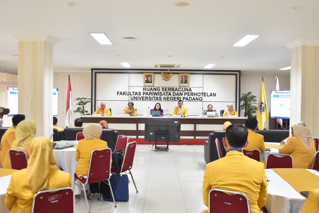 Padang – Suasana berbeda tampak di ruang serbaguna Gedung Dekanat Fakultas Pariwisata dan Perhotelan (FPP) Universitas Negeri Padang (UNP) Selasa (23/2). Dua asesor dari Badan Akreditasi Nasional Perguruan Tinggi (BAN PT) melakukan visitasi langsung ke program studi S2 Pariwisata Fakultas Pariwisata & Perhotelan (FPP). Kunjungan ini merupakan bagian dari upaya peningkatan mutu Pendidikan tinggi yang sejalan dengan Tujuan Pembangunan Berkelanjutan. (SDGs4)