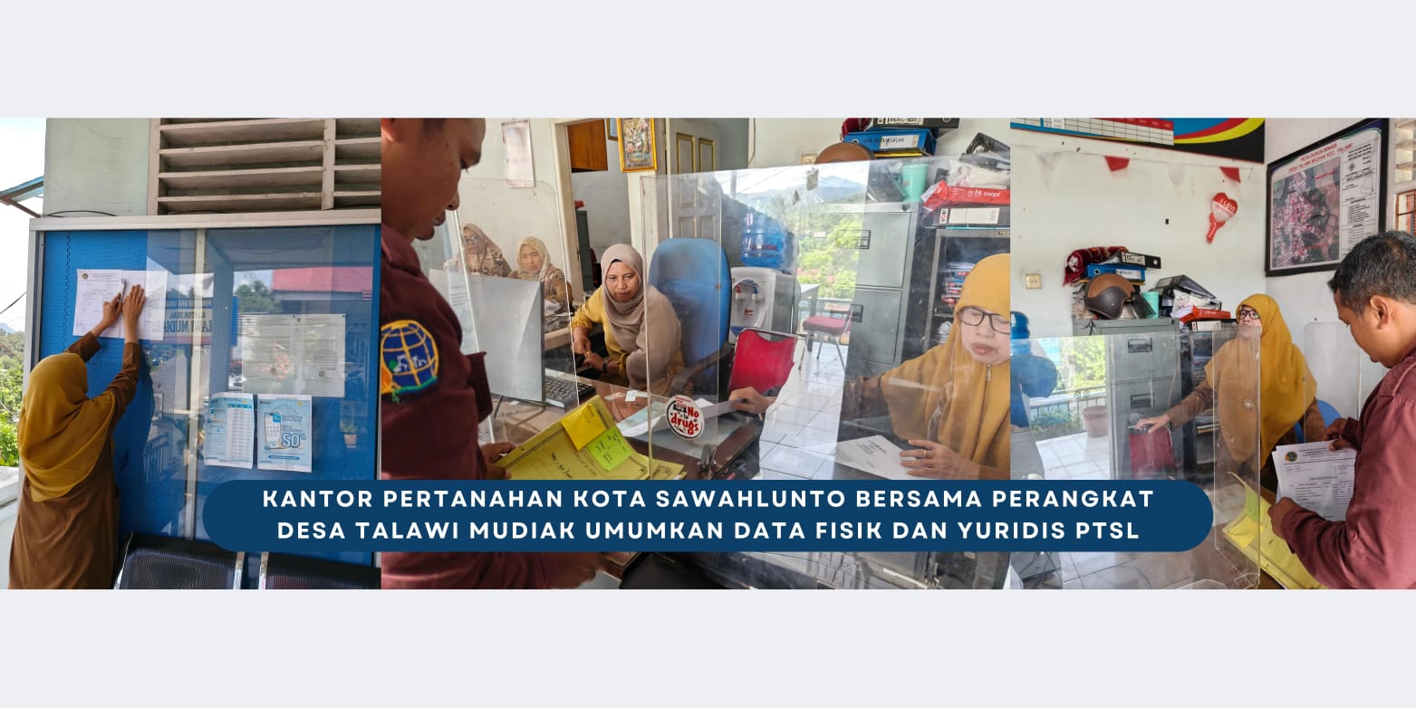 Sawahlunto,dutametro.com – Kantor Pertanahan Kota Sawahlunto bersama perangkat Desa Talawi Mudiak melaksanakan kegiatan pengumuman data fisik dan yuridis dalam rangka Pendaftaran Tanah Sistematis Lengkap (PTSL). Kegiatan ini merupakan bagian dari tahapan dalam pelaksanaan PTSL yang bertujuan untuk menyampaikan informasi kepada masyarakat terkait data bidang tanah yang telah dikumpulkan sebelumnya.