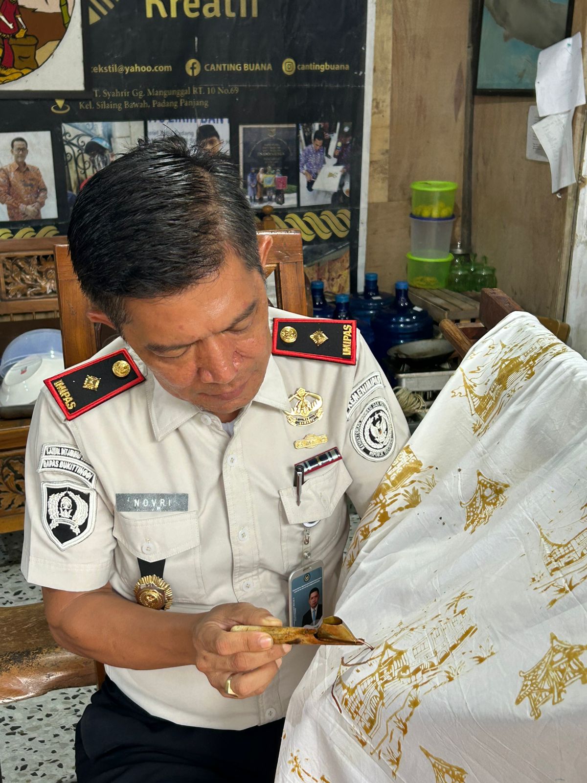 Padang Panjang, dutametro.com – Kepala Rumah Tahanan Negara (Rutan) Kelas IIB Padang Panjang kunjungi Rumah Batik Canting Buana Kreatif Jumat sore (24/04) guna menjalin kerjasama untuk pembinaan kemandirian Wargabinaan Pemasyarakatan (WBP) Rutan Padang Panjang yang akan dituangkan nantinya dalam sebuah MoU