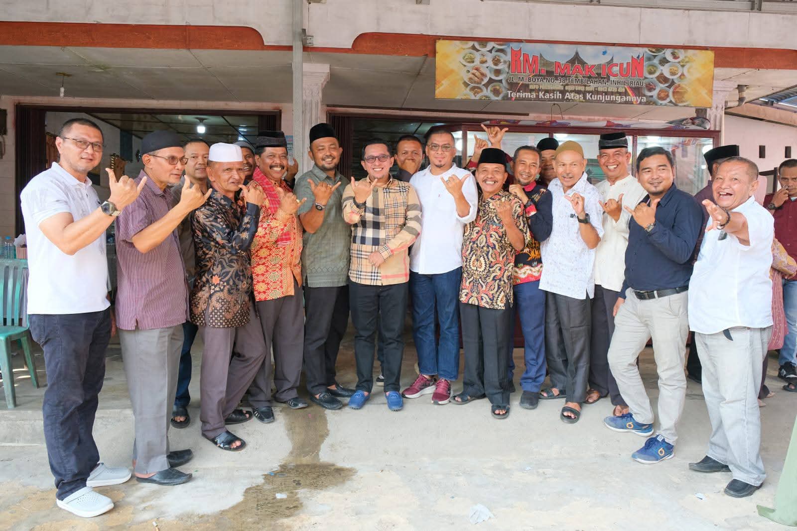 Bupati bersama isteri dan rombongan yang terdiri Asisten Pemerintahan dan Kesra H. Elizar, Kepala Dinas PUPR Ten Feri, Kabag Prokopim Dedi Tri Widono, Kabag Umum Ronal Satria, Plt. Sekretaris Bapenda Franky Adi Thama serta rombongan lainnya disambut langsung oleh Ketua IKTD Tembilahan Defri Devito beserta pengurus dan juga Ketua IKMR Kabupaten Inhil Romi Irawan dalam sebuah jamuan makan siang di RM. Mak Icun.