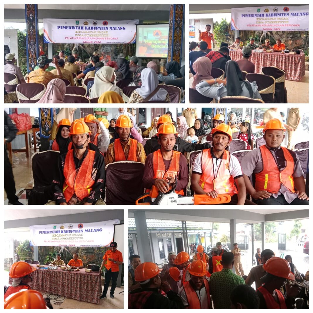 Acara pelatihan kesiapsiagaan bencana dihadiri Kasi trantib Kecamatan Wajak Ribut, Babinsa, anggota polsek wajak, anggota linmas, perangkat desa juga tokoh masyarakat, dan sejumlah warga desa