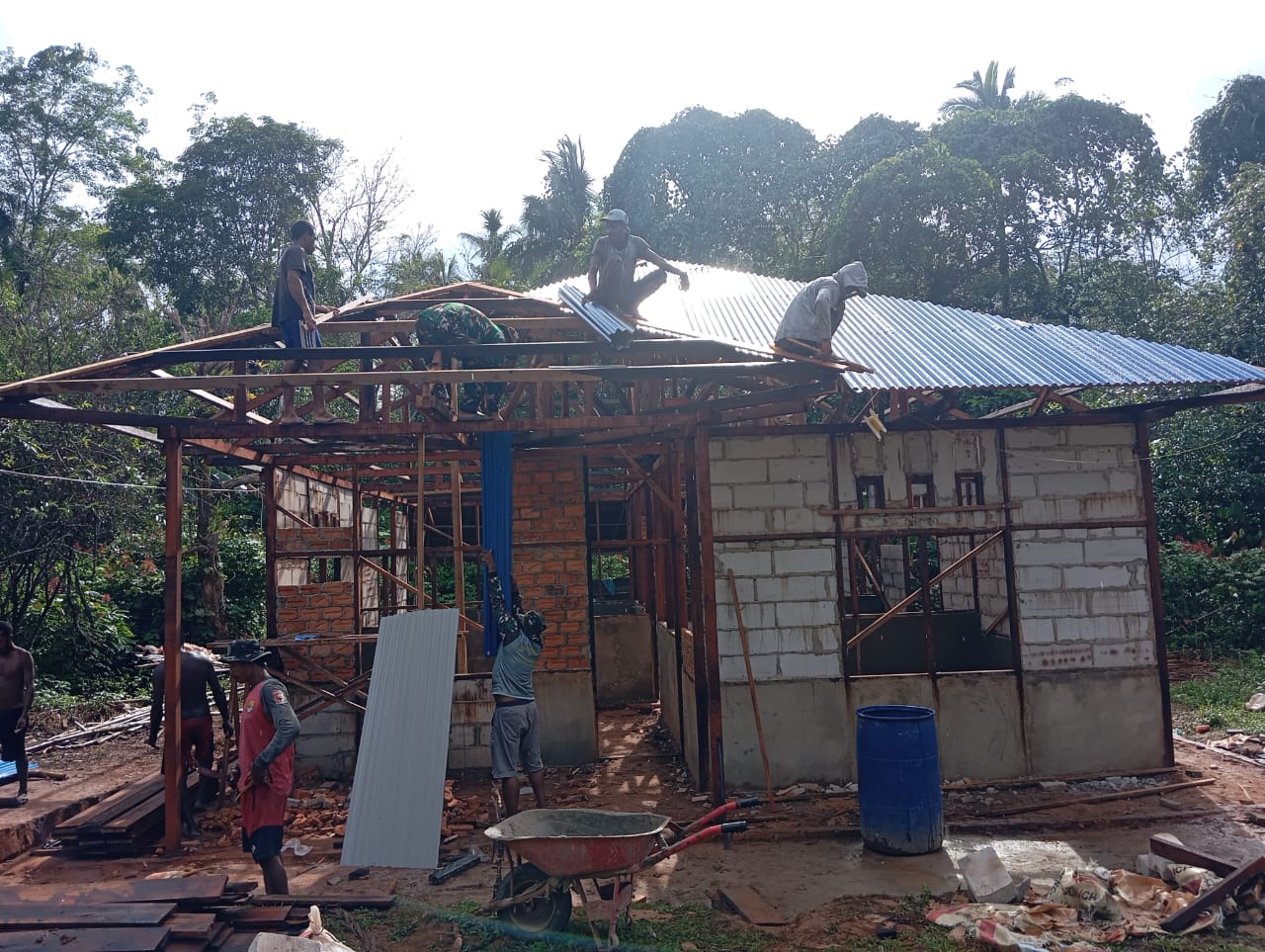 Setiap hari, personel TMMD dan warga bahu membahu menyelesaikan berbagai tahapan pembangunan rumah, mulai dari pemasangan dinding, atap, lantai, hingga pengecatan. Koordinasi yang baik dan pembagian tugas yang jelas memastikan pekerjaan berjalan efektif dan efisien.