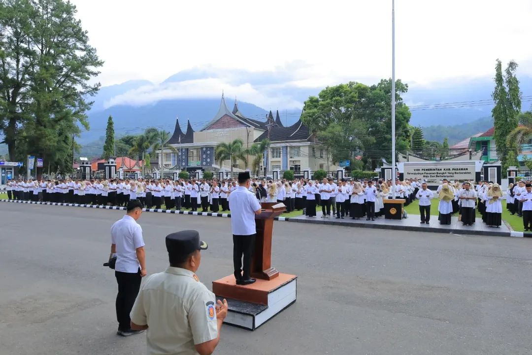 Pasaman – Mengawali hari kerja pertama pascalibur nasional dan cuti bersama Idulfitri 1447 Hijriah, Pemerintah Kabupaten Pasaman menggelar apel perdana yang dipimpin langsung oleh Bupati Pasaman, Welly Suhery. Kegiatan tersebut berlangsung khidmat di halaman Kantor Bupati Pasaman, Rabu (25/03/2026).