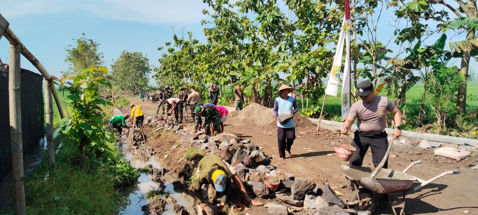 Menurut Pasiter Kodim Sragen Kapten Kav Anang, pembangunan talud dimasukkan ke dalam sasaran fisik TMMD Reg-128 karena menanggapi permasalahan warga yang mengeluhkan erosi di sisi kanan dan kiri jalan yang akan di cor. Jum’at, 24/04/2026.