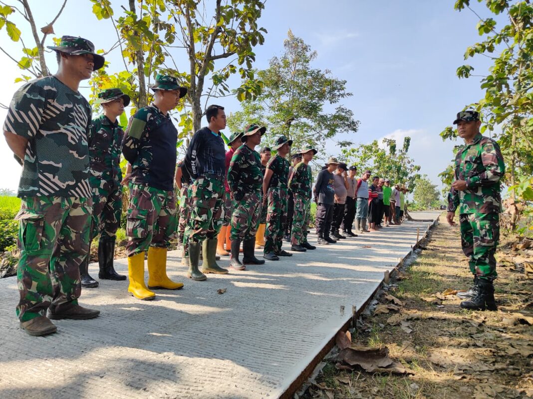Setiap pagi seluruh prajurit TNI yang tergabung dalam satgas dan masyarakat yang membantu pengerjaan cor blok jalan dan talud melaksanakan apel pagi yang dipimpin oleh Danramil 02/Karangmalang Lettu Arh Ifa Aiwan Kristono. Apel pagi bertujuan untuk mengetahui kesiapan seluruh komponen yang ada, baik material maupun personal. Sabtu, 25/04/2026.