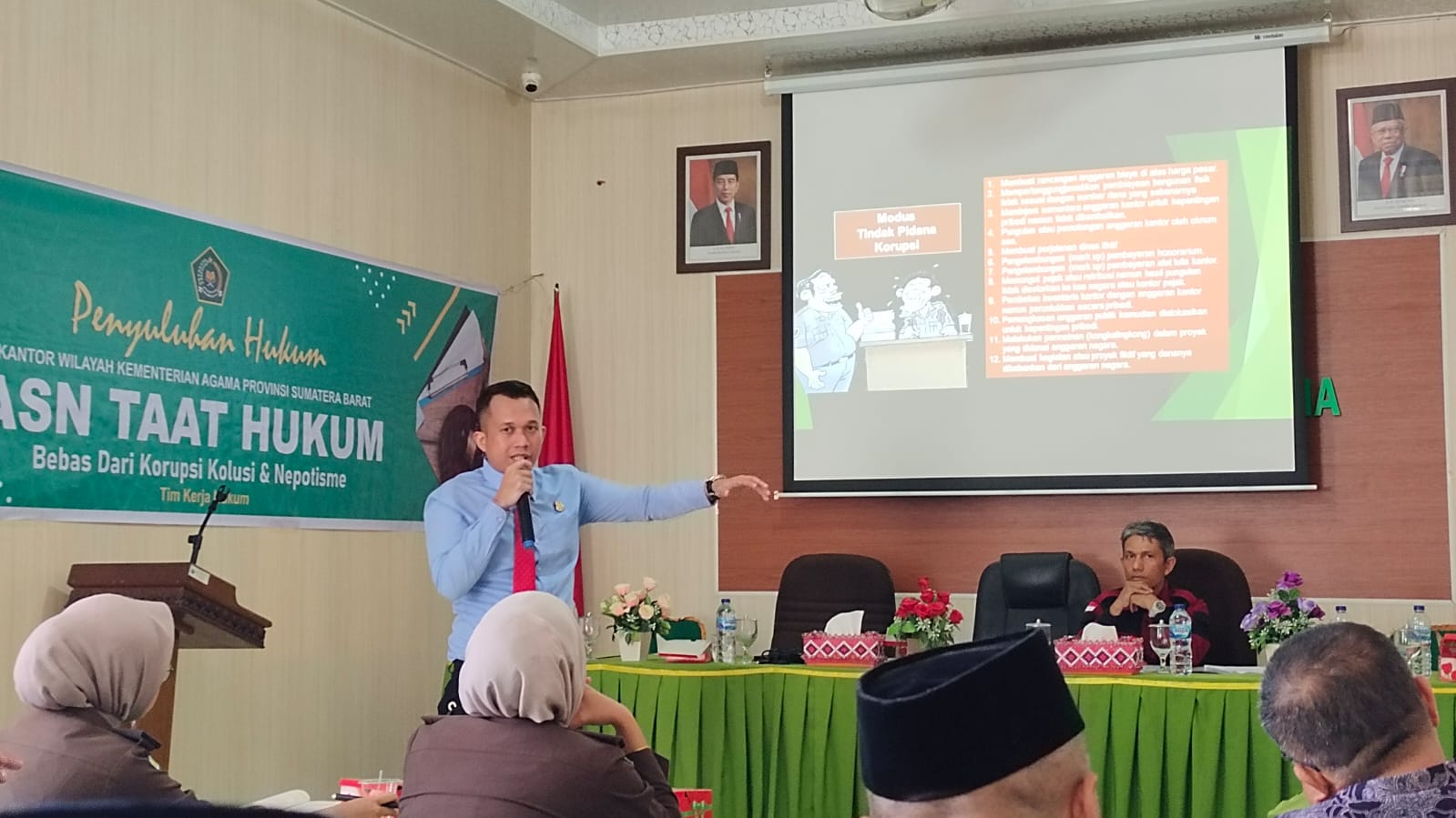 Sawahlunto, dutametro.com – Sebanyak 25 orang pejabat struktural dan fungsional di lingkungan Kantor Kementerian Agama Kota Sawahlunto diberikan penyuluhan hukum. Dibuka Kepala Bagian Tata Usaha Kantor Wilayah Kementerian Agama Provinsi Sumatera Barat H. Miswan, Kamis (25/7/2024) dia Aula Kemenag Sawahlunto disebutkan, Aparatur Sipil Negara (ASN) garda terdepan dan jadi contoh dalam mewujudkan masyarakat taat hukum.