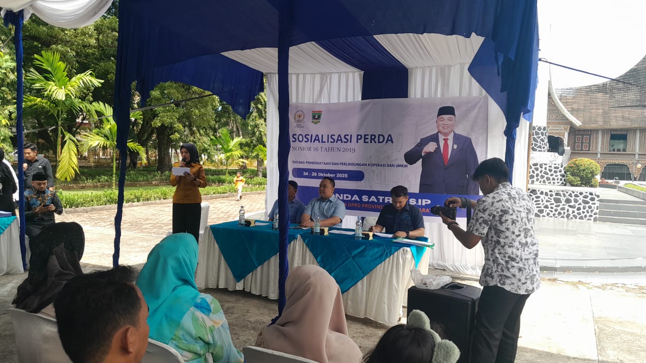 Padang,dutametro.com – Wakil Ketua DPRD Provinsi Sumatera Barat (Sumbar), Nanda Satria, menggelar Sosialisasi Peraturan Daerah (Sosper) Nomor 16 Tahun 2019 tentang Pemberdayaan dan Perlindungan Koperasi serta UMKM. Kegiatan tersebut berlangsung di halaman Museum Adityawarman, Belakang Tangsi, Kota Padang, Sabtu (25/10/2025).