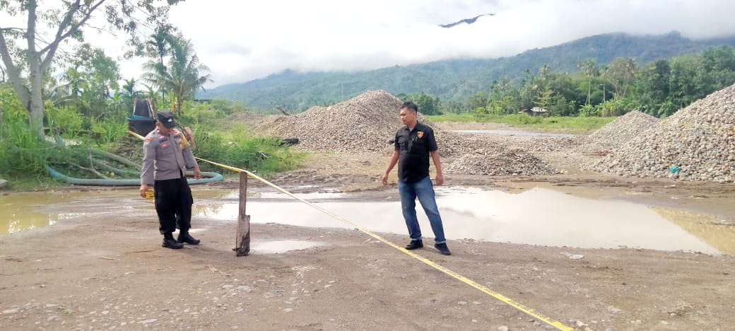 Pemasangan garis polisi ini guna memastikan tidak ada lagi aktivitas penambangan galian C di lokasi tersebut.