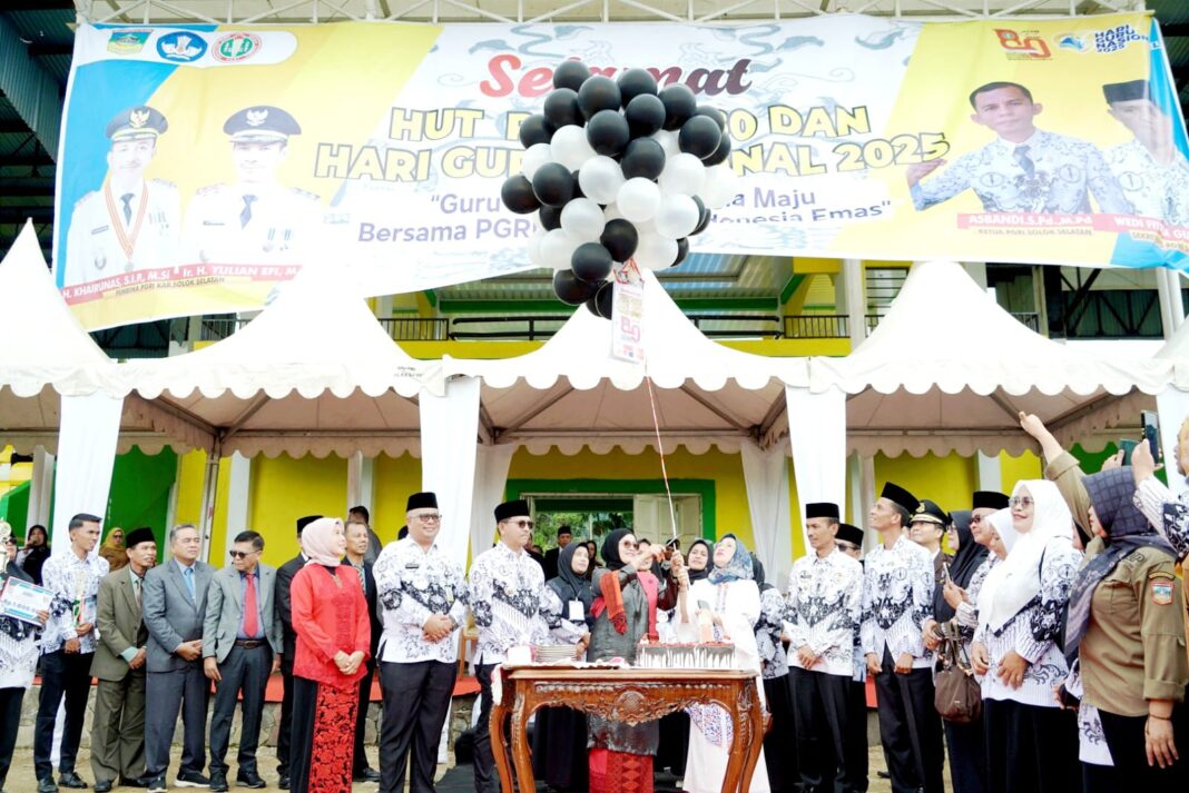 Solsel, dutametro.com.– Penuh semangat dan kebanggaan, para guru dari seluruh wilayah Solok Selatan memadati GOR Rimbo Tangah Kec. Sangir. Ribuan pahlawan tanpa tanda jasa ini antusias mengikuti upacara peringatan Hari Guru Nasional (HGN) Tahun 2025 Tingkat Kabupaten Solok Selatan.