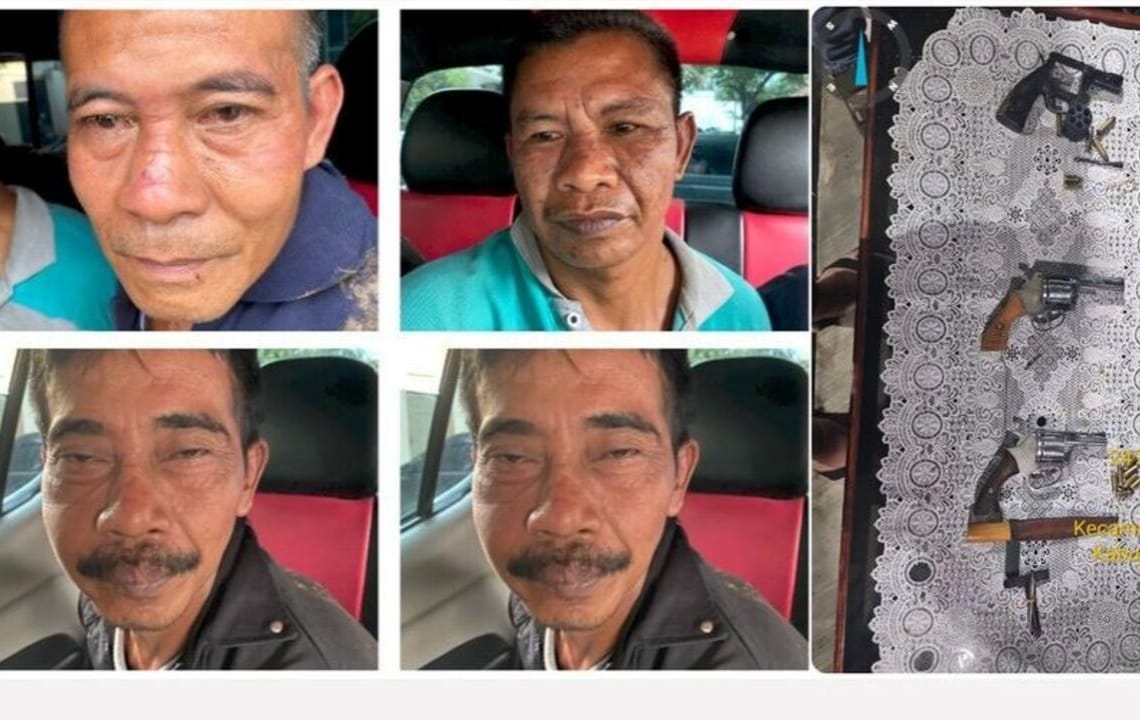 ” Untuk senjata kita mengamankan 1 pucuk senjata api rakitan laras pendek jenis revolver berikut 8 butir amunisi, 1 pucuk senjata api rakitan laras pendek jenis revolver berikut 7 butir amunisi,1 pucuk senjata api rakitan laras pendek jenis revolver berikut 4 butir amunisi, 1 bilah pisau milik korban yang diambil oleh tersangk,.2 unit Hp Nokia tipe 105 ,1 unit Hp Nokia tipe 106 Ds,1 unit Hp Vivo tipe Y12,1 unit Hp Vivo tipe 1816,1 unit Hp Vivo tipe Vivo,” urainya.