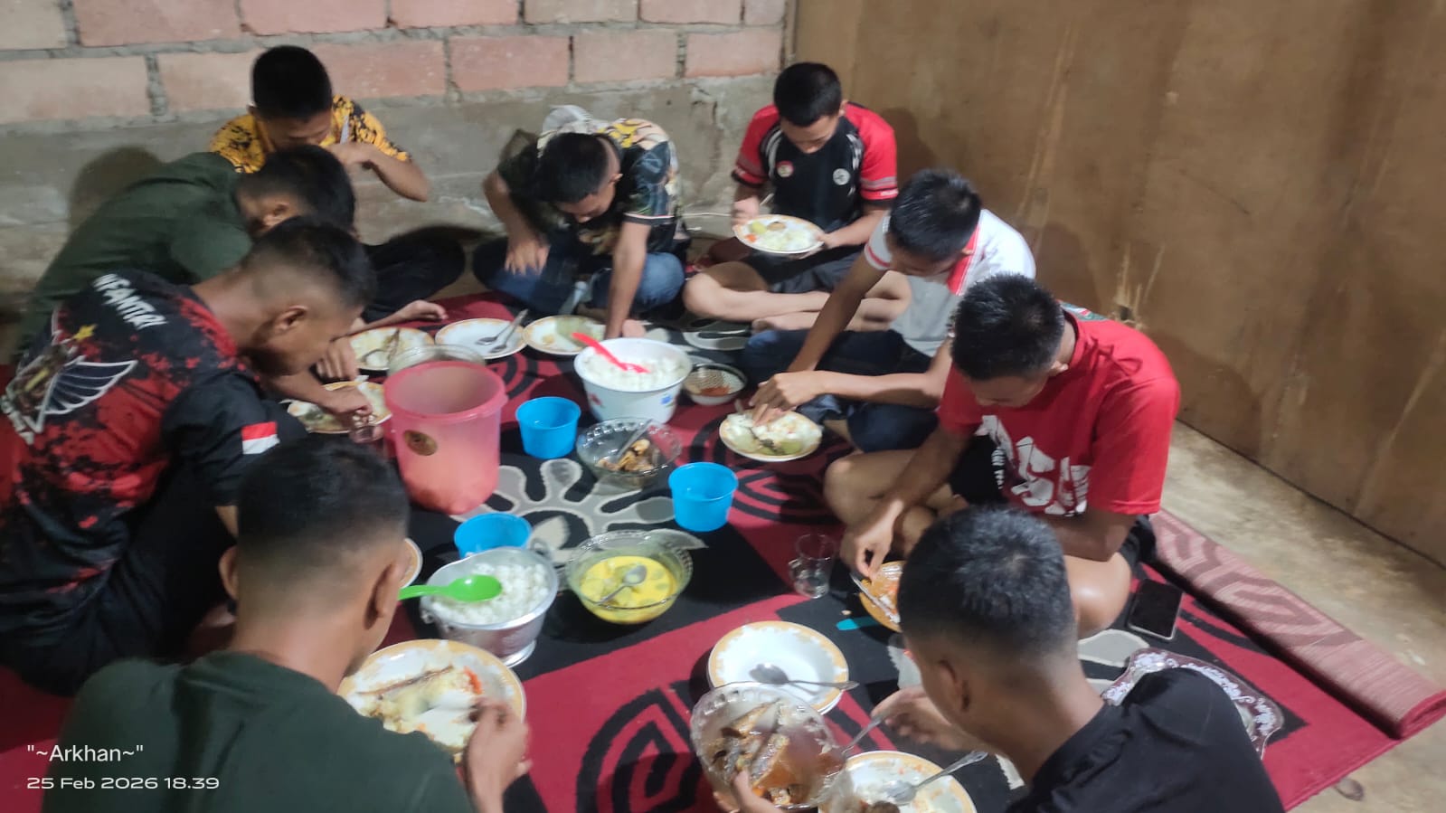Meskipun jauh dari keluarga, suasana hangat nampak menyelimuti para personel saat menyantap hidangan sahur sederhana dengan penuh khidmat.