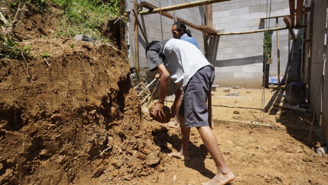 Tak lagi sekedar rencana, pembangunan itu kini telah berjalan. Dari total 10 rumah sasaran, progresnya saat ini telah mencapai sekitar 15 persen. Pondasi mulai tersusun rapi, sementara sebagian rumah sudah mulai memasuki tahap pendirian tembok.