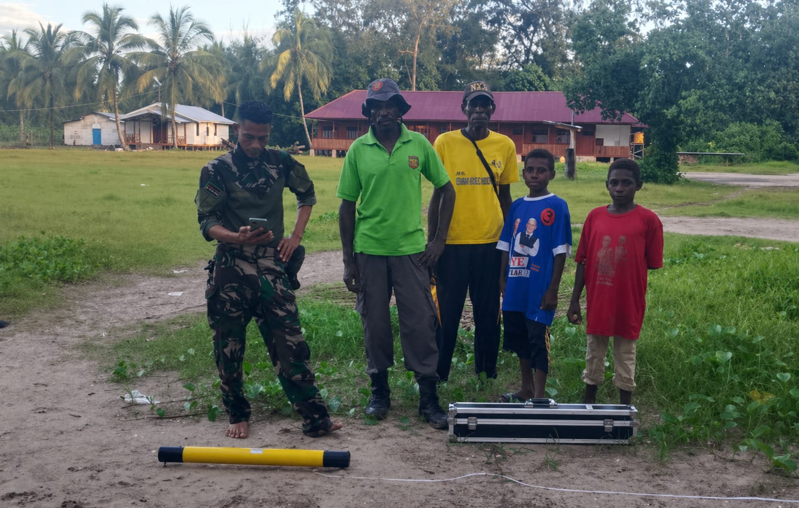 Dalam rangka mendukung pelaksanaan program TMMD Reguler ke-128, Kodim 1710/Mimika melalui Satgas TMMD melaksanakan kegiatan pencarian titik sumber air menggunakan alat geolistrik di Kampung Keakwa. Kegiatan ini dilakukan untuk mengetahui potensi sumber air bawah tanah secara akurat sebelum proses pengeboran dilaksanakan. Dengan metode geolistrik, tim teknis dapat mendeteksi lapisan tanah dan kandungan air di bawah permukaan sehingga titik pengeboran dapat ditentukan secara tepat, Minggu (26/4/2026).