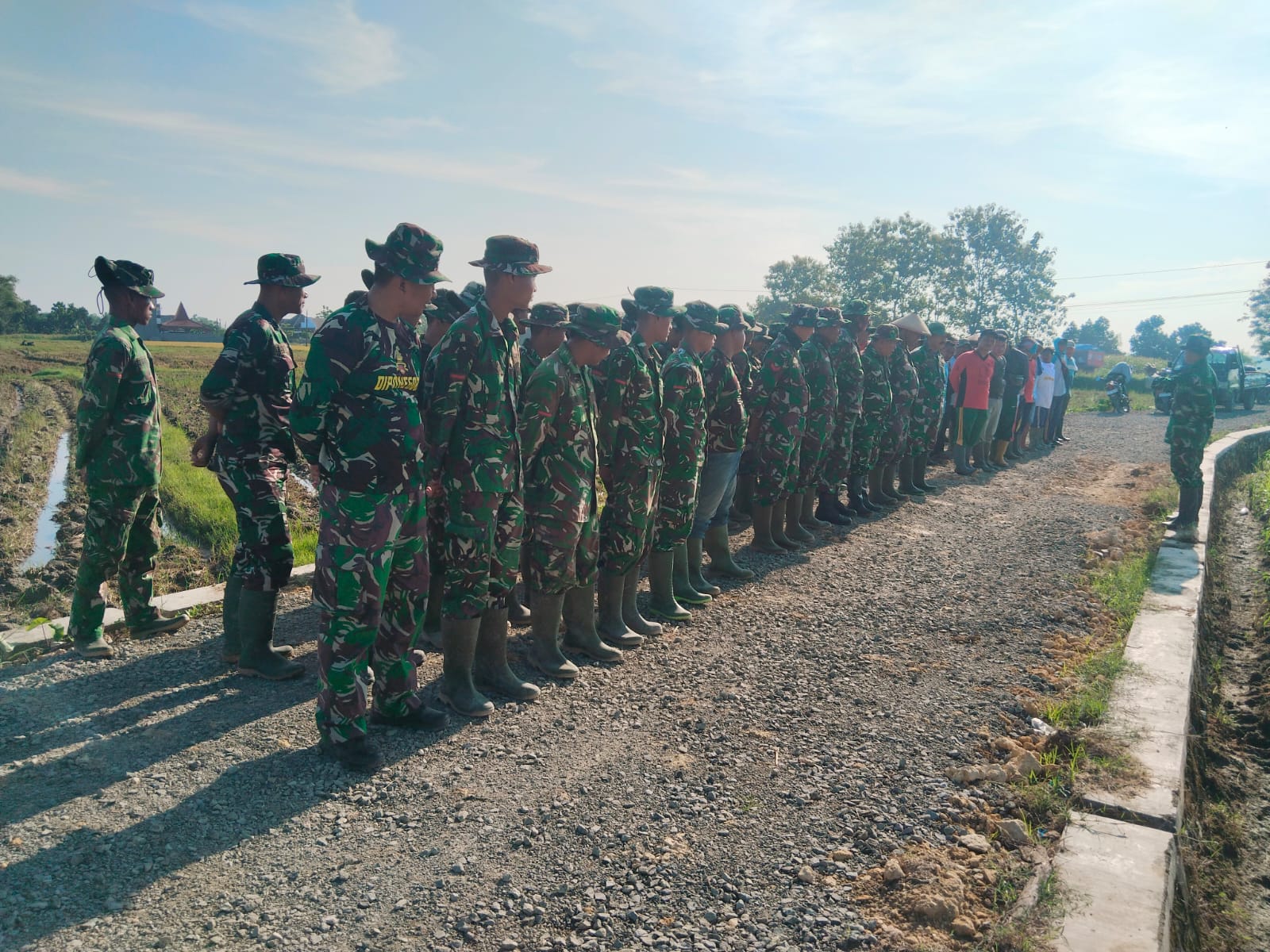 Apel pagi dipimpin langsung oleh Danton SSK (Satuan Setingkat Pleton) TMMD Reguler 128 Kodim 0718/Pati Letda Inf Ali Sadikin di lokasi TMMD Desa Godo Kecamatan Winong Kabupaten Pati.Minggu,(26/04/2026).