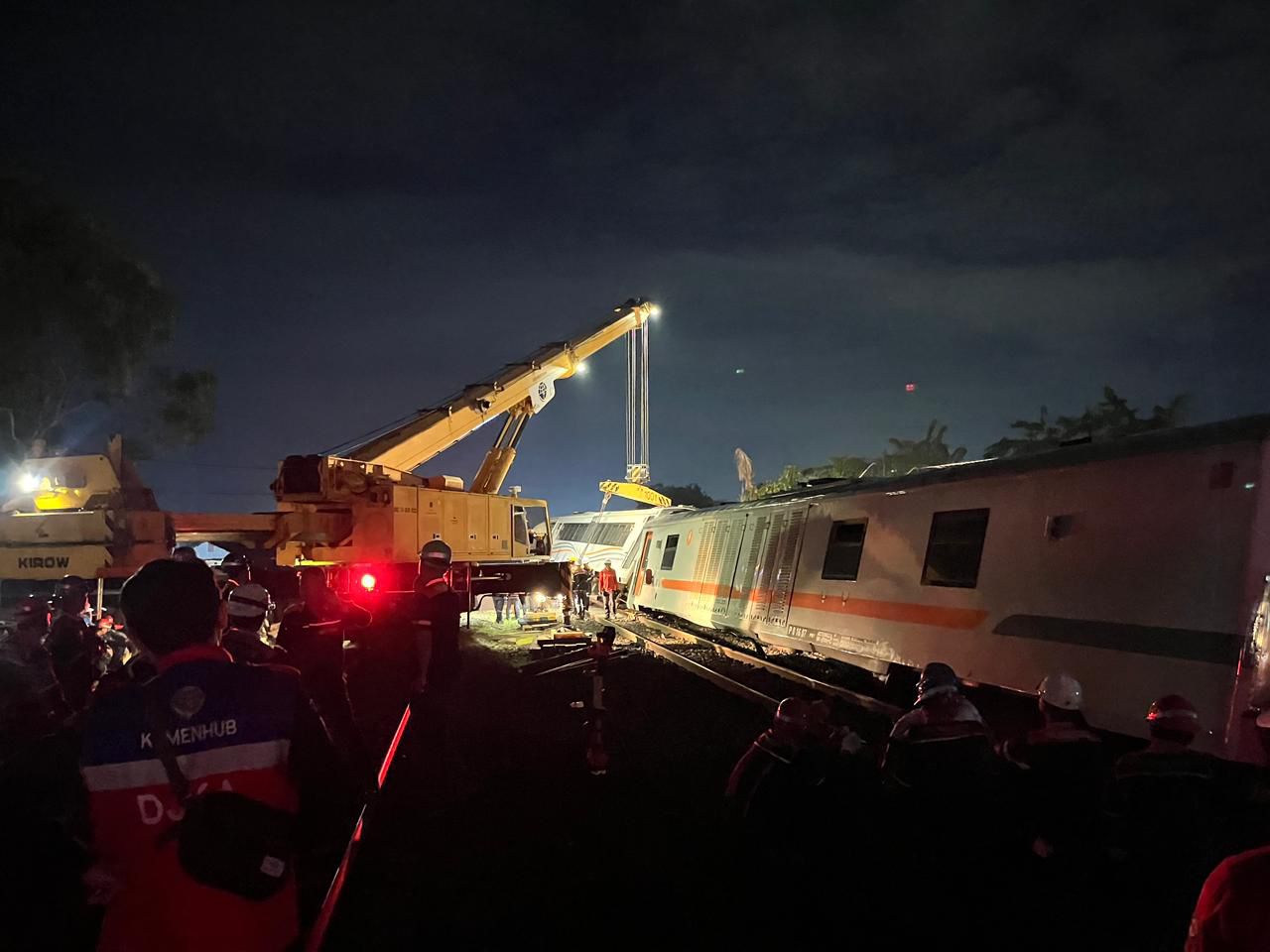 Personel Brimob tiba di lokasi sekitar pukul 20.15 WIB dan langsung berkoordinasi dengan pihak PT Kereta Api Indonesia (KAI), kepolisian setempat, serta instansi terkait lainnya. Mereka kemudian melakukan pengaturan arus lalu lintas di sekitar lintasan yang terdampak akibat dua gerbong bagian belakang kereta yang anjlok.