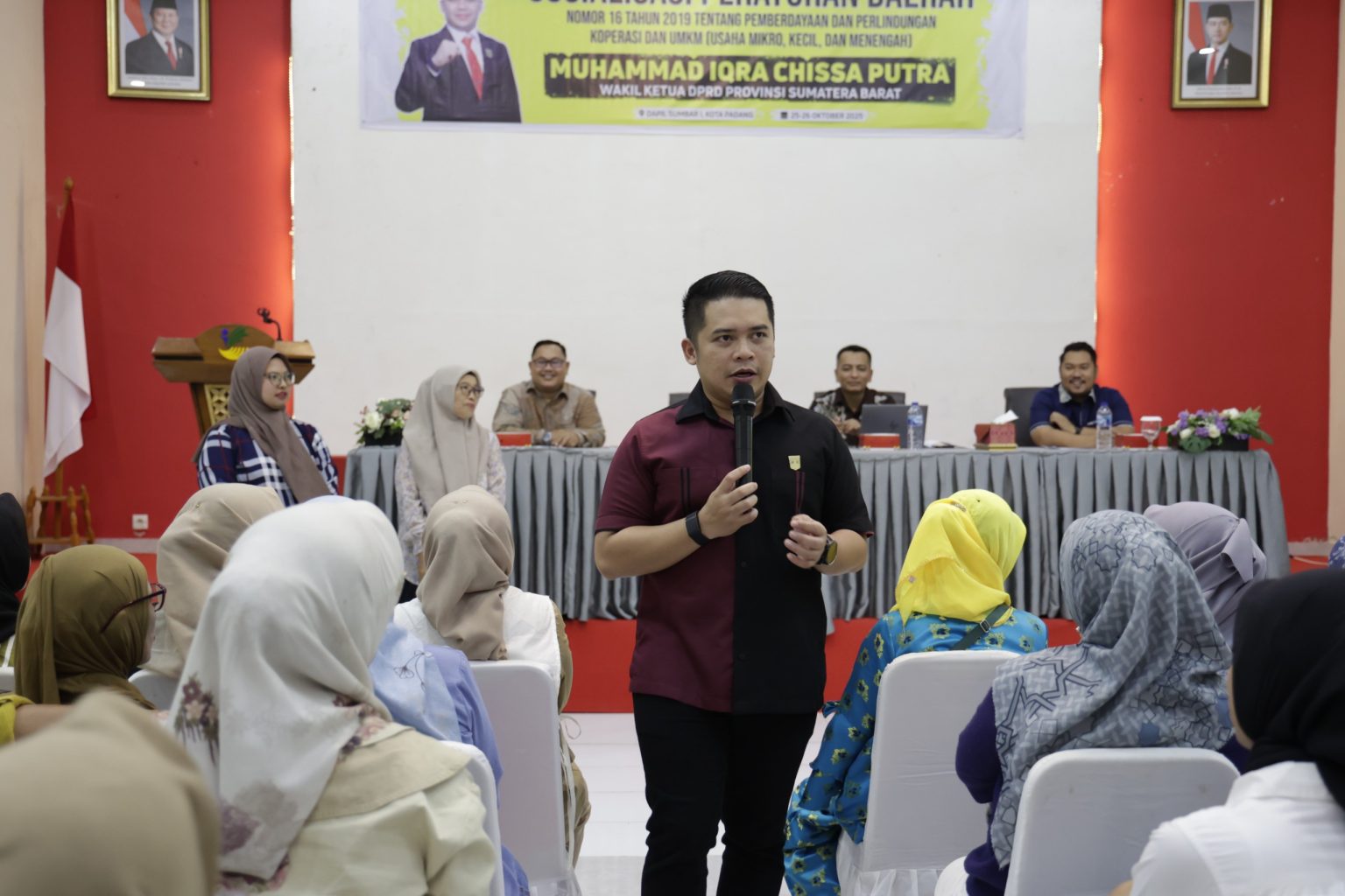 Padang,dutametro.com – Wakil Ketua DPRD Provinsi Sumatera Barat, Muhammad Iqra Chissa Putra, mendorong pelaku Usaha Mikro, Kecil, dan Menengah (UMKM) di Kota Padang untuk terus berkembang dan naik kelas. Dorongan ini ia sampaikan saat melaksanakan Sosialisasi Peraturan Daerah (Perda) Nomor 16 Tahun 2019 tentang Pemberdayaan dan Perlindungan Koperasi serta Usaha Kecil, Minggu (26/10/2025).