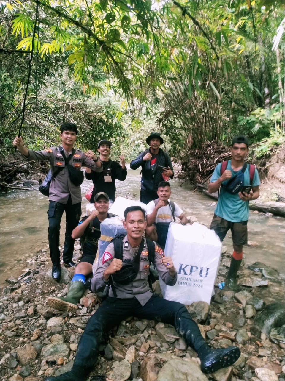 Perjalanan yang ditempuh berjalan kaki ini menjadi semakin menantang karena tidak adanya akses laut dan darat yang memadai. Personil harus melewati medan yang berat, termasuk gunung dan sungai, untuk mencapai lokasi TPS. Meskipun demikian, mereka tetap bertekad dan berhasil tiba di lokasi tujuan pada pukul 18.30 WIB.