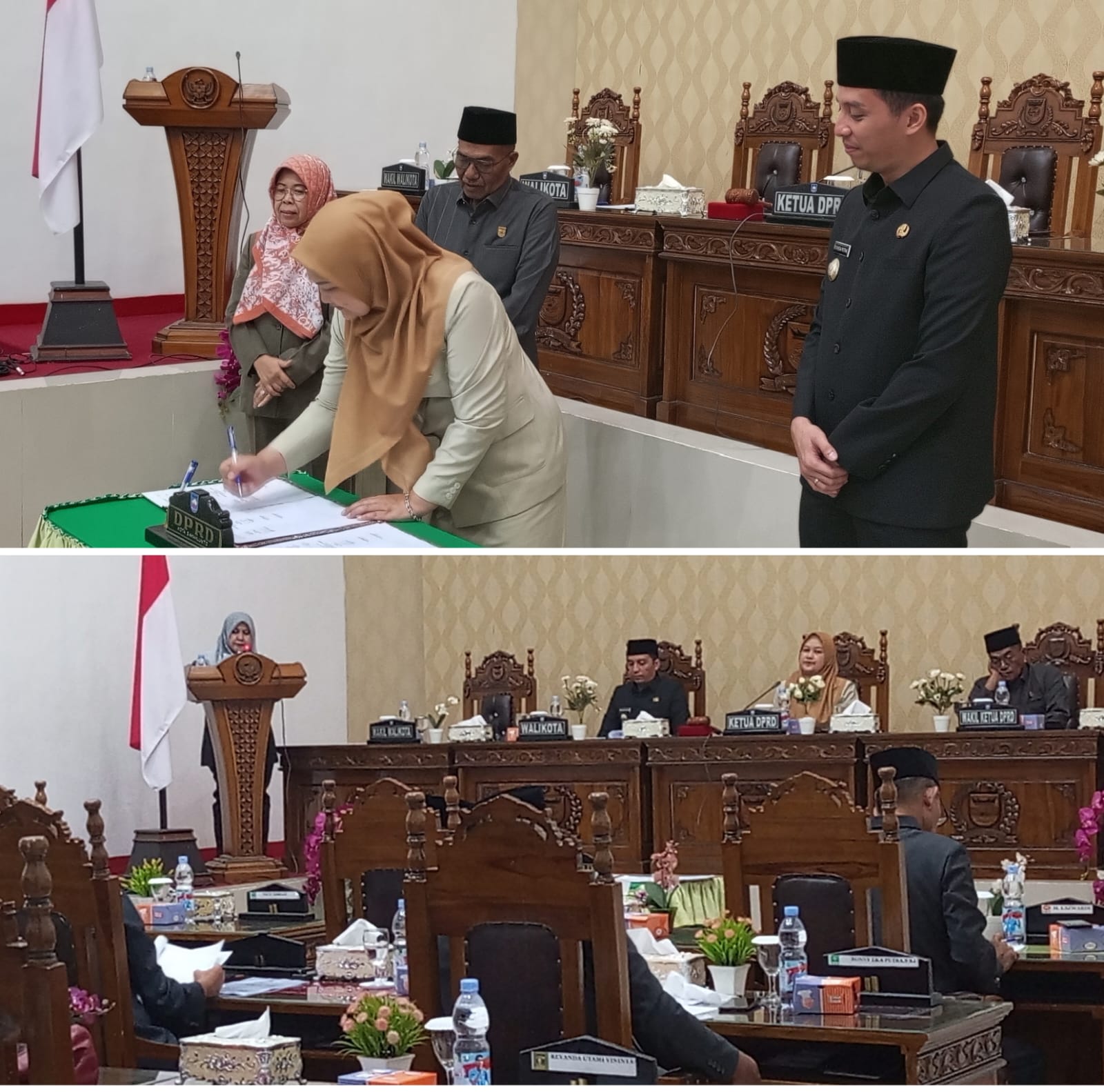 Sawahlunto,dutametro com – Dewan Perwakilan Rakyat Daerah (DPRD) dan Pemerintah Kota (Pemkot) Sawahlunto setujui Badan Pembentukan Peraturan Daerah (BapemPerda) 2026. Persetujuan itu ditandai dengan penandatanganan nota kesepakatan oleh Wali Kota Sawahlunto Riyanda Putra bersama ketua DPRD Susi Haryati, Wakil Ketua DPRD Jaswandi dan Elfia Rita Dewi dalam sidang paripurna, Rabu (26/2025) di gedung parlemen setempat.