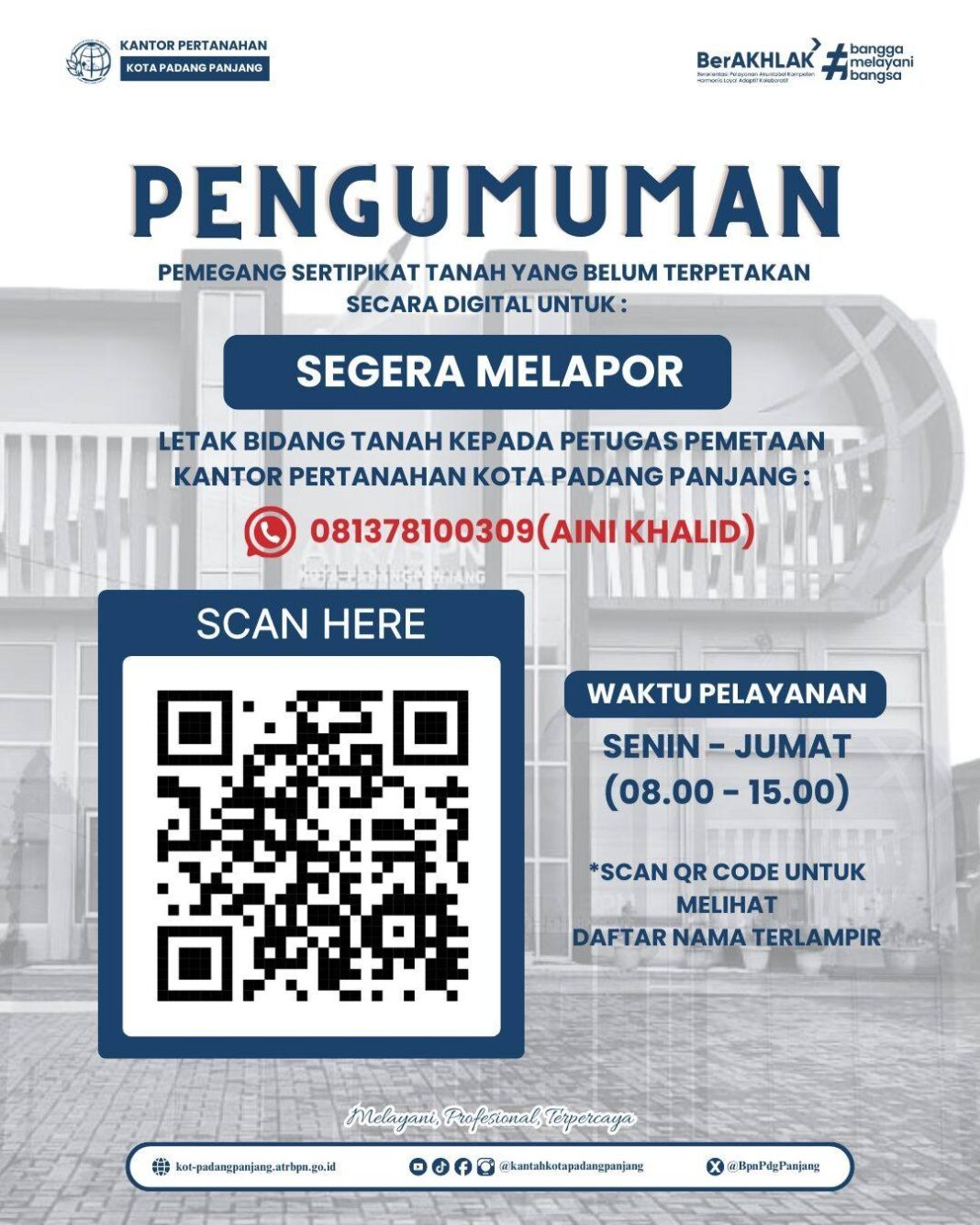 Ia menambahkan, program ini juga mendukung peningkatan kualitas data pertanahan di Padang Panjang dengan tujuan memetakan seluruh sertipikat tanah secara digital.