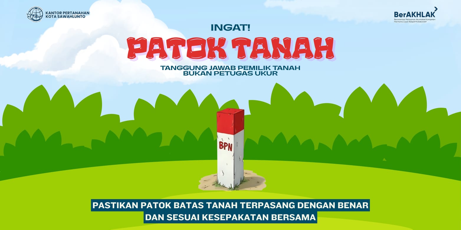 Kantor Pertanahan Kota Sawahlunto mengajak masyarakat untuk bersama-sama mendukung tertib administrasi pertanahan dengan memastikan kesiapan patok batas sebelum pengukuran dilakukan.