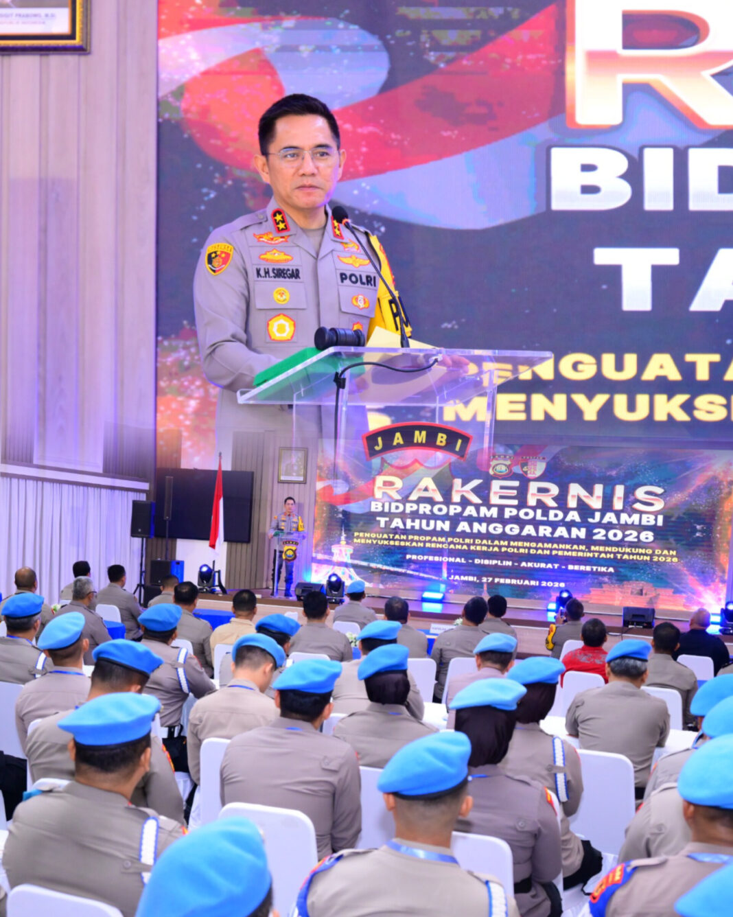 JAMBI, dutametro.com – Kepolisian Daerah Jambi menggelar Rapat Kerja Teknis (Rakernis) Bidang Profesi dan Pengamanan (Bidpropam) Tahun Anggaran 2026, Jumat (27/2/2026), di Aula Lantai 3 Gedung Siginjai Mapolda Jambi. Kegiatan ini menjadi langkah strategis dalam memperkuat fungsi pengawasan internal di lingkungan Polri.