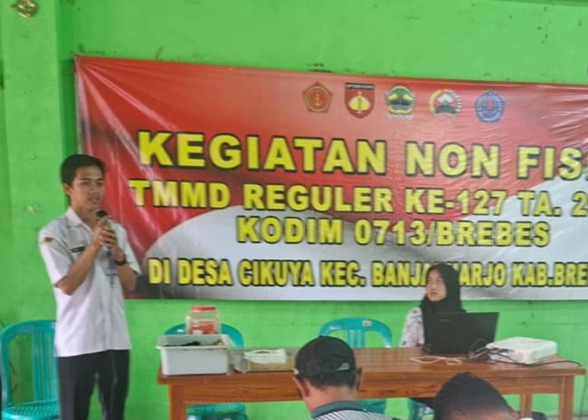 Brebes – Tak hanya fokus pada pembangunan infrastruktur jalan dan fisik, Satgas TNI Manunggal Membangun Desa (TMMD) Reguler ke-127 Kodim 0713/Brebes juga menaruh perhatian besar pada kelestarian lingkungan. Pada Jum’at (27/02/2026), bekerja sama dengan Dinas Lingkungan Hidup (DLH) Kabupaten Brebes, digelar sosialisasi pembuatan lubang biopori dan pengolahan sampah organik di Balai Desa Cikuya.