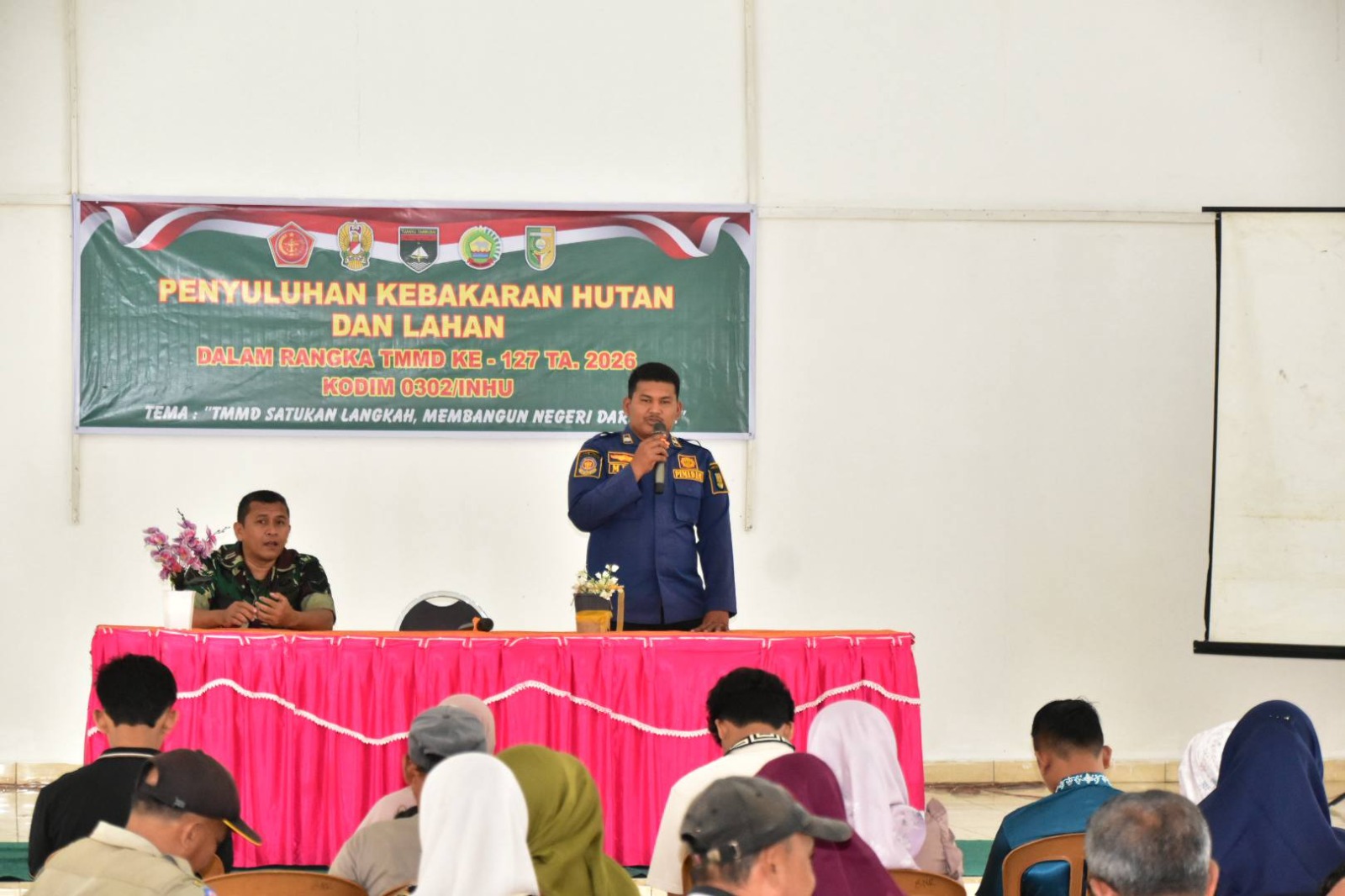 Kuantan Singingi – Kodim 0302/Inhu menggelar kegiatan penyuluhan kebakaran hutan dan lahan (Karhutla) sebagai bagian dari sasaran non-fisik TNI Manunggal Membangun Desa (TMMD) ke-127. Kegiatan ini dilaksanakan di Aula kantor camat Kuantan Hilir, Kabupaten Kuantan Singingi, pada Jumat (27/02/2026).