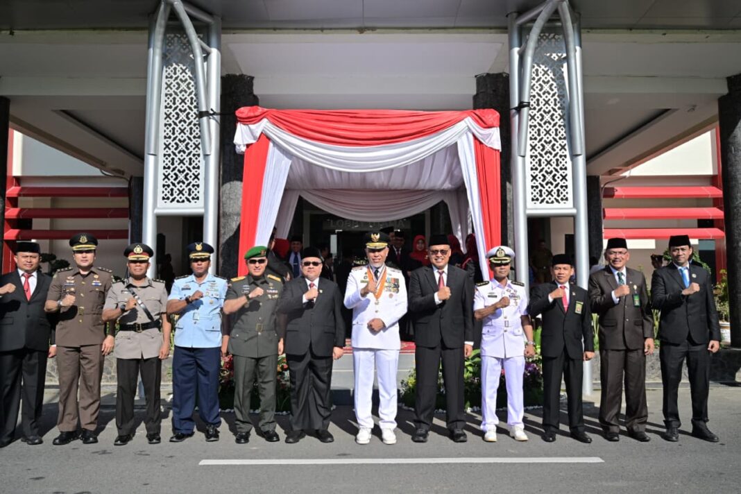 PADANG — Gubernur Sumatera Barat (Sumbar), Mahyeldi Ansharullah memimpin upacara peringatan Hari Otonomi Daerah ke-30 yang digelar di halaman Kantor Gubernur, Senin (27/4/2026).