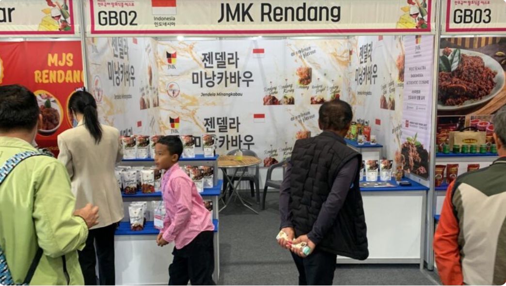 Suryani Sabri, salah seorang pelaku UMKM Sumbar yang menjadi produsen rendang dengan merek dagang Jendela Minangkabau (JMK) mengaku bersyukur dapat terlibat dalam kegiatan International Fermented Food Expo (IFFE) Tahun 2024 di Korea Selatan.