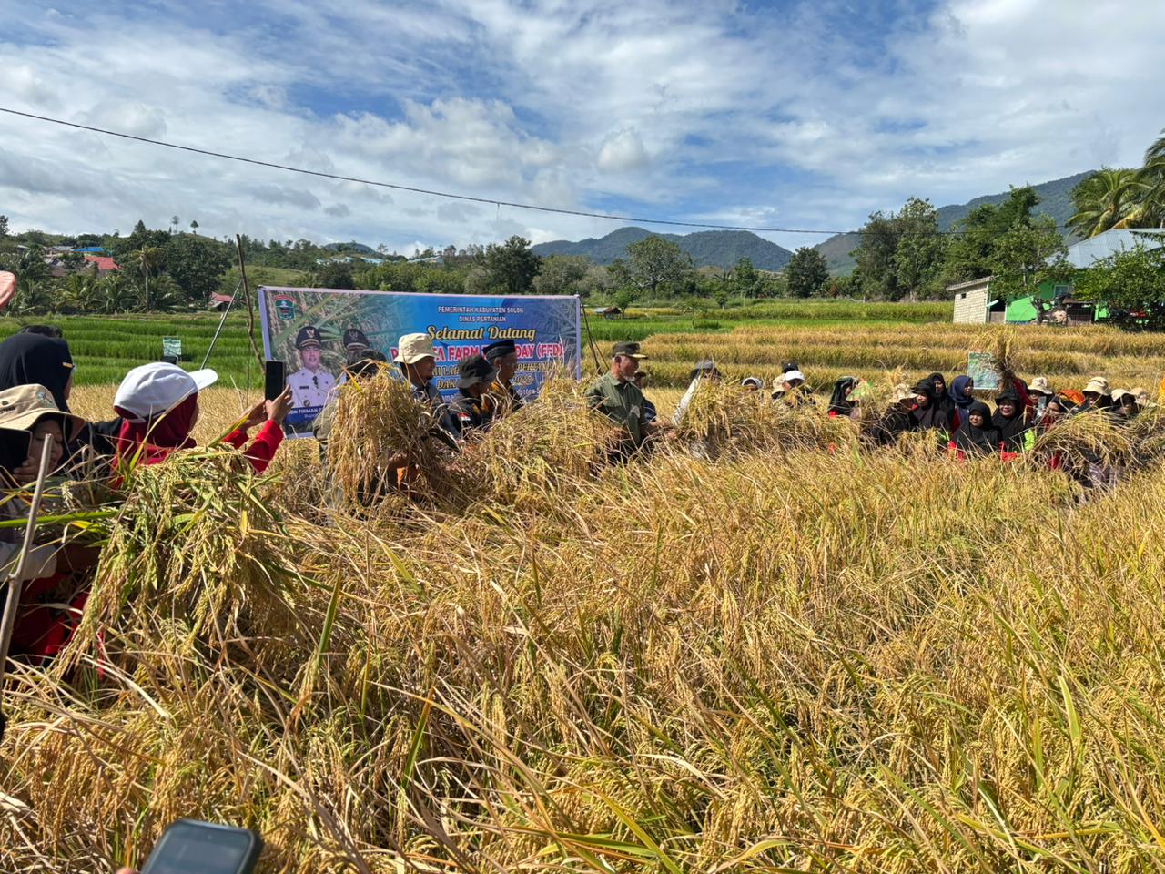 Kegiatan diakhiri dengan panen bersama, doa, penyerahan produk hasil pertanian, serta sesi foto bersama antara Gubernur, pejabat daerah, dan para petani yang penuh semangat.