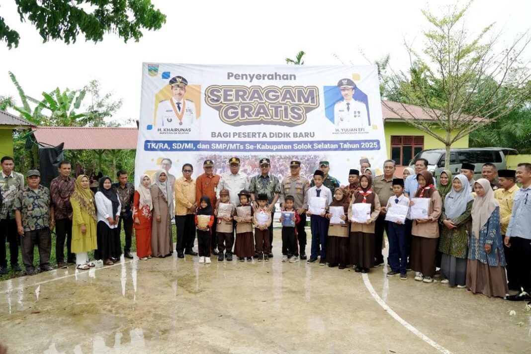 ”Semoga seragam ini menjadi penyemangat bagi anak-anak kita untuk terus belajar, menyampaikan cita-cita, dan menjadi generasi yang membanggakan untuk Kabupaten Solok Selatan,” imbuhnya. (Med)