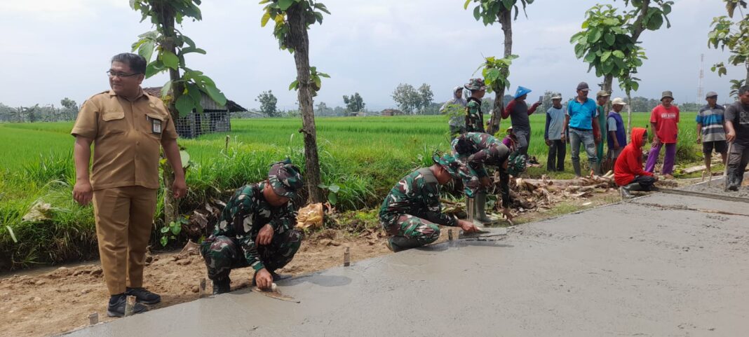 SRAGEN – Perangkat Desa Puro, Kecamatan Karangmalang, Kabupaten Sragen, melakukan peninjauan langsung ke lokasi kegiatan TMMD Reguler ke-128 Kodim 0725/Sragen, Selasa (28/04/2026). Kegiatan ini dilakukan untuk memastikan progres pekerjaan berjalan sesuai rencana dan tepat sasaran.
