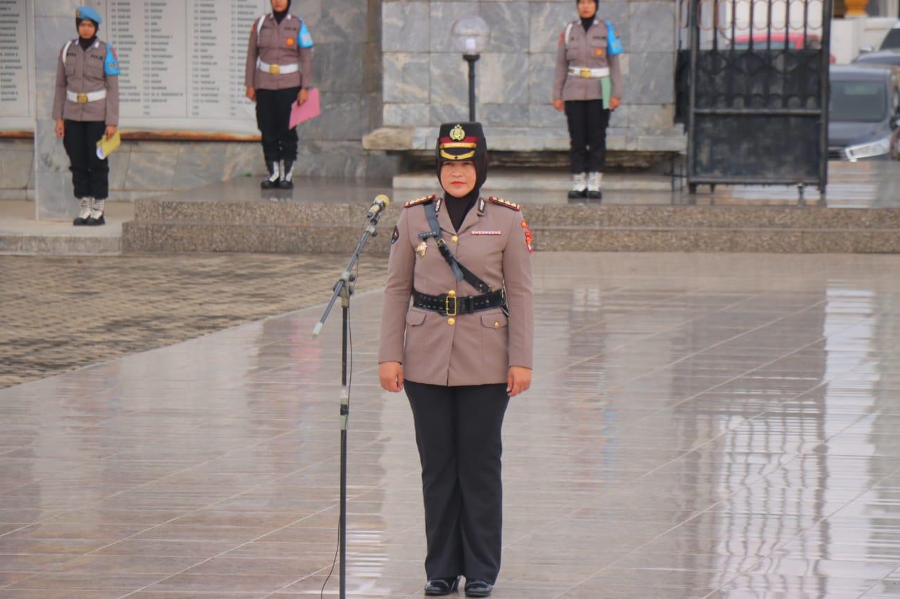 Jajaran Polwan Polda Lampung melaksanakan kegiatan ziarah dan tabur bunga di Taman Makam Pahlawan (TMP) pada Kamis, 28 Agustus 2025.