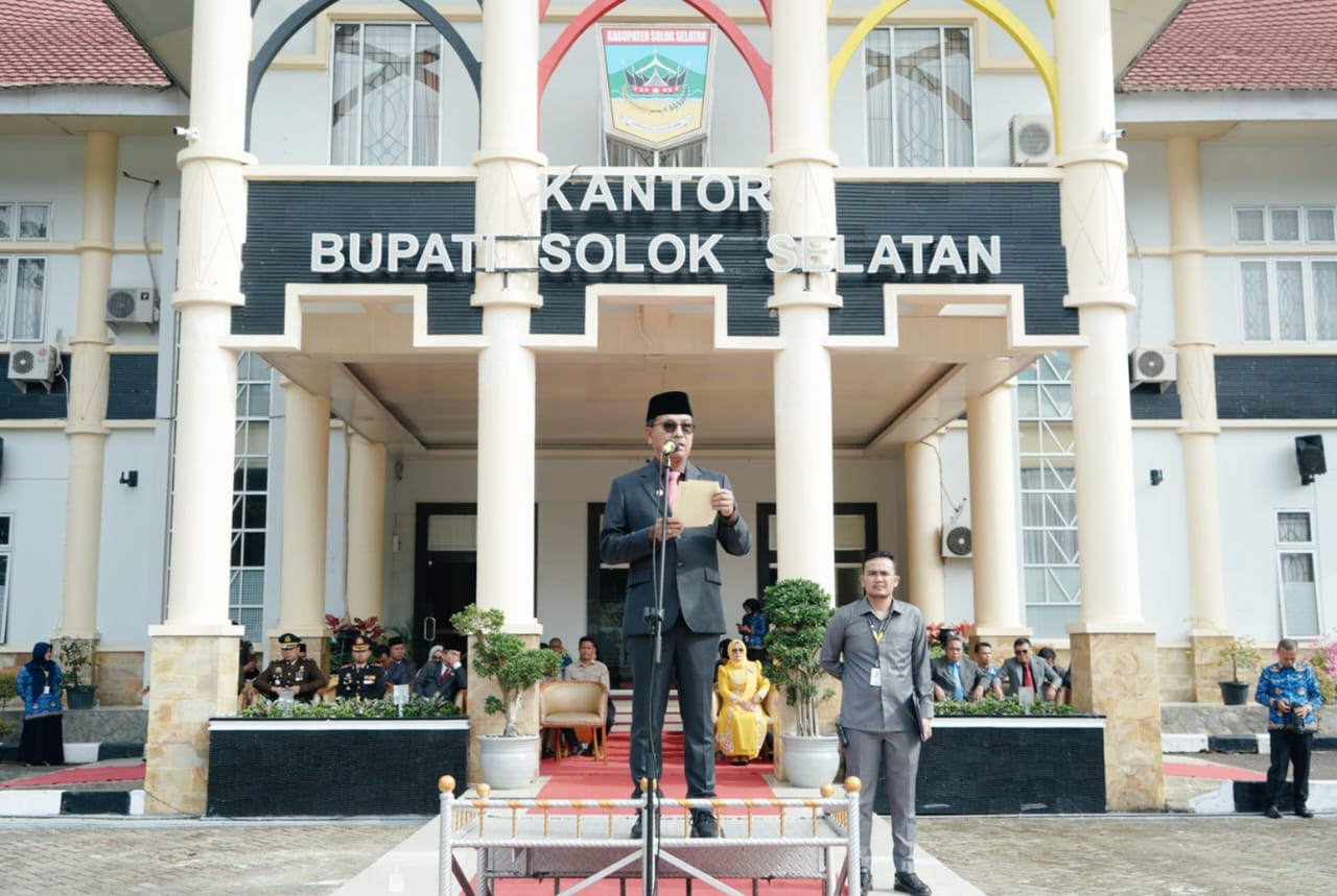 Solsel, dutametro.com – Pemerintah Kabupaten Solok Selatan menggelar upacara peringatan Hari Sumpah Pemuda ke-97 Tahun 2025 di Halaman Kantor Bupati, Selasa (28/10/2025). Upacara berlangsung khidmat dengan Bupati H. Khairunas bertindak sebagai Inspektur Upacara.