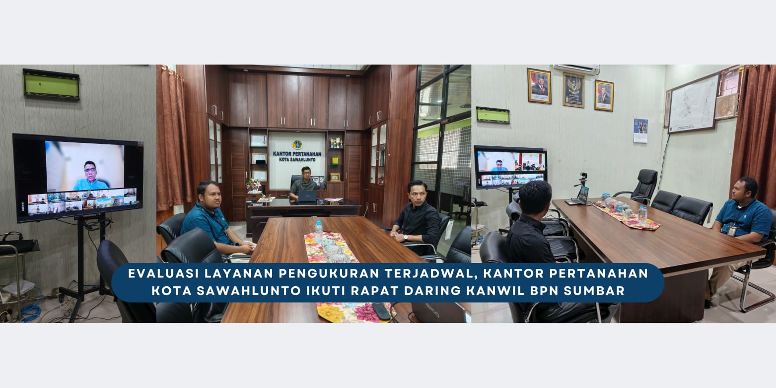 Sawahlunto,dutametro.com – Kantor Pertanahan Kota Sawahlunto mengikuti rapat evaluasi dan monitoring pelaksanaan Layanan Pengukuran Terjadwal yang diselenggarakan oleh Kantor Wilayah BPN Provinsi Sumatera Barat pada Jumat, 24 April 2026. Kegiatan ini dilaksanakan secara daring melalui Zoom Meeting.