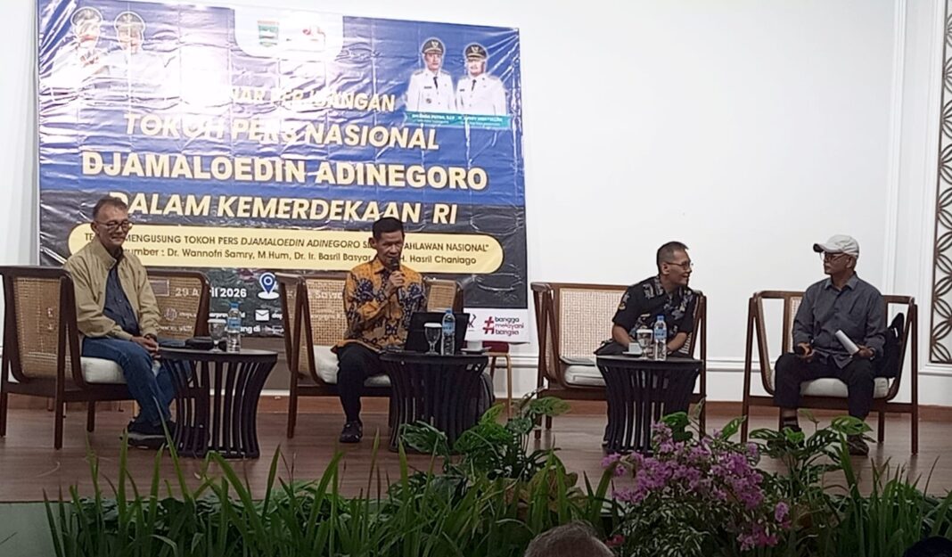Sawahlunto,dutametro.com – Mengusung tokoh pers Nasional Djamaludin Adinegoro sebagai pahlawan Nasional menjadi tema Seminar yang digelar oleh Dinas Kearsipan dan Perpustakaan Provinsi Sumatera Barat berkolaborasi dengan forum penggiat literasi Adinegoro Sawahlunto. Seminar dibuka oleh Sekretaris Daerah Sawahlunto Rovanly Abdams, Rabu (29/04/2026) di SAKA Heritage Ombilin Sawahlunto. Hadir dalam pembukaan seminar anggota komisi V DPRD Provinsi Sumatera Barat Neldaswenti, Kepala Dinas Kearsipan dan Provinsi Sumatera Barat Jumadi.