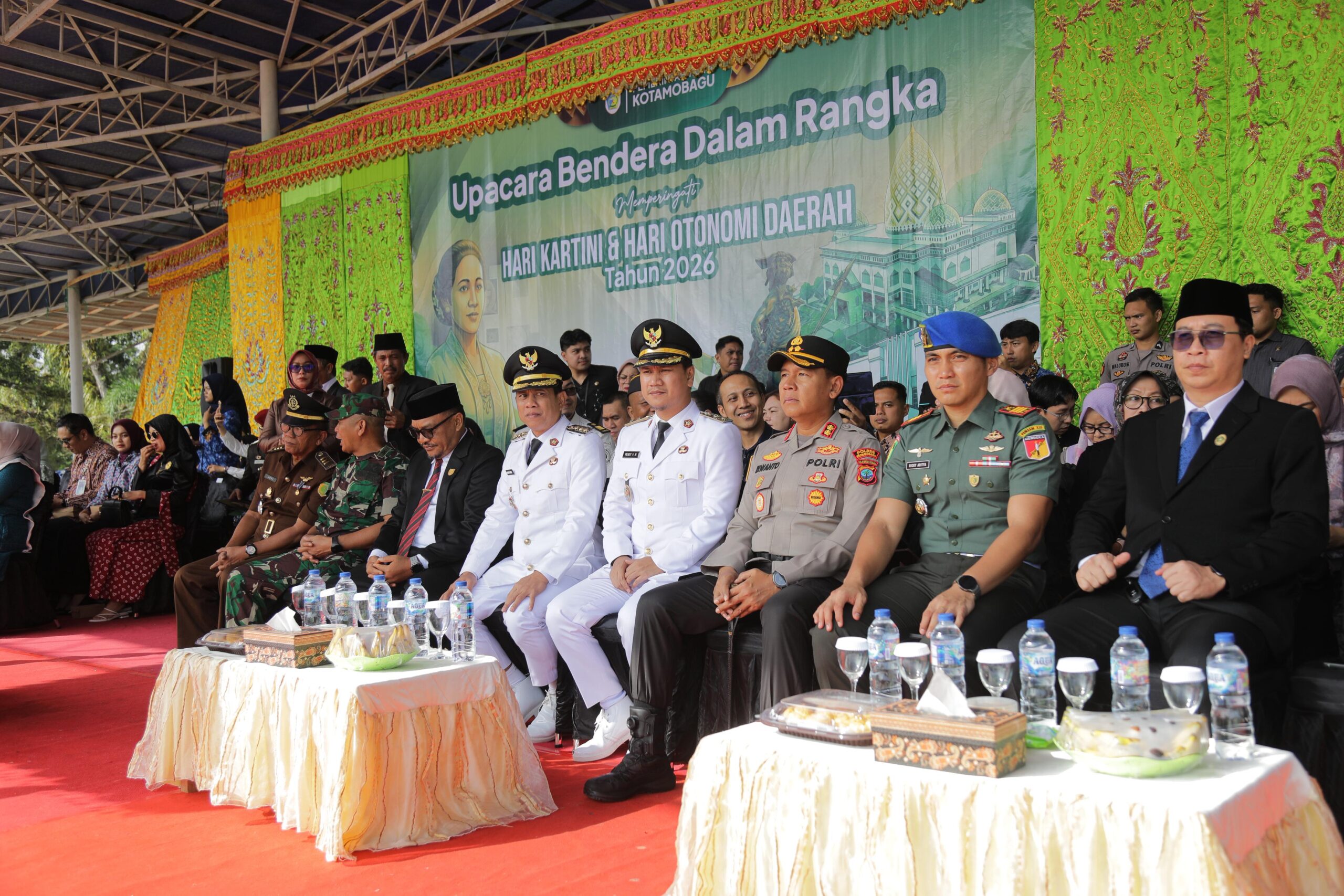 Upacara tersebut juga menampilkan nuansa budaya yang kuat. Ketua TP-PKK Kota Kotamobagu, Ny. Rindah Gaib Mokoginta, S.E., M.Ec.Dev., yang bertindak sebagai perwira upacara, tampil anggun mengenakan kain lukis karya Ketua TP-PKK Provinsi Sulawesi Utara, Anik Yulius Selvanus.Kegiatan ini turut dihadiri Wakil Wali Kota Kotamobagu Rendy Virgiawan Mangkat, Ketua DPRD Adrianus Mokoginta, Kapolres AKBP Irwanto, jajaran Forkopimda, pimpinan instansi vertikal, serta para pejabat dan ASN di lingkungan Pemerintah Kota Kotamobagu.