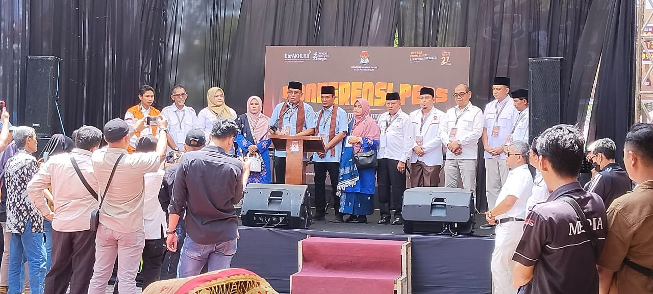 “Setelah selasai melakukan pendaftaran, kepada paslon Supardi-Tri Venindra kami persilahkan untuk tampil di pentas konfrensi pers untuk menyampaikan pesan dan kesannya ke media cetak, online dan elektronik. Ataupun, jika ada tanya jawab, kami persilahkan,”ujar Wiztri Yasir.