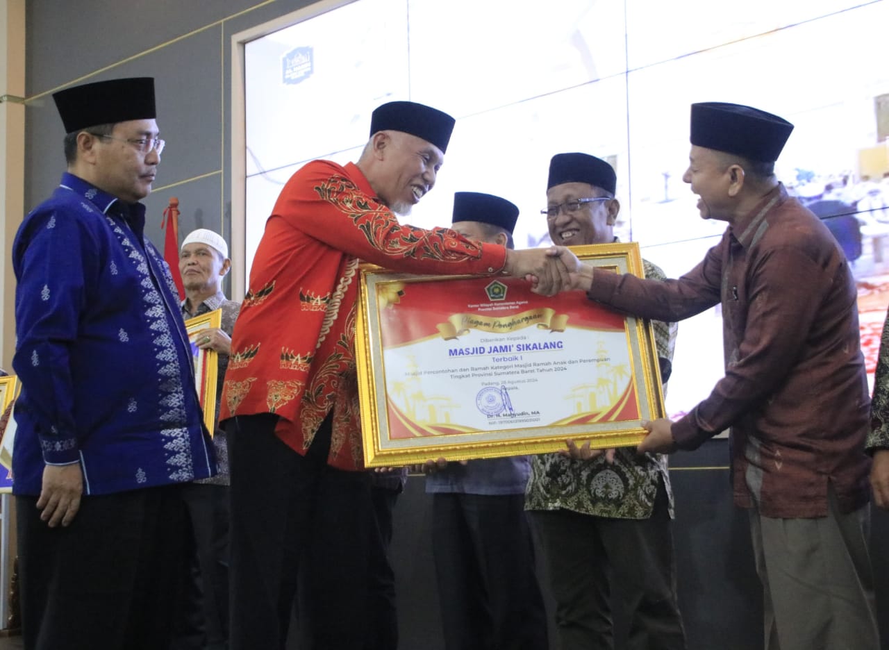 Setelah melalui beberapa tahapan penilaian, Masjid Jamik Ijtihad Desa Sikalang Kecamatan Talawi Kota Sawahlunto sukses meraih juara pertama Masjid Percontohan kategori Ramah Anak dan Perempuan tingkat Provinsi Sumatera Barat, yang hadiah dan penghargaan langsung diserahkan oleh Gubernur Sumatera Barat Mahyeldi Ansharullah kepada Penjabat (Pj) Sekda Irzam dan Pengurus Masjid Ijtihad Sikalang Maizul Fahmi, Rabu (28/8/2024) kemarin.