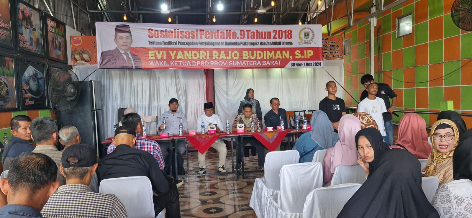 Sosialisasi yang dilaksanakan pada Sabtu, 30 November 2024, di Cafe Rajo Durian, Jalan By Pass Ketaping, Kelurahan Pasar Ambacang, Kecamatan Kuranji, ini bertujuan untuk memperkenalkan Perda No. 9 Tahun 2018 yang mengatur Fasilitasi Pencegahan Penyalahgunaan Narkotika, Psikotropika, dan Zat Adiktif lainnya.
