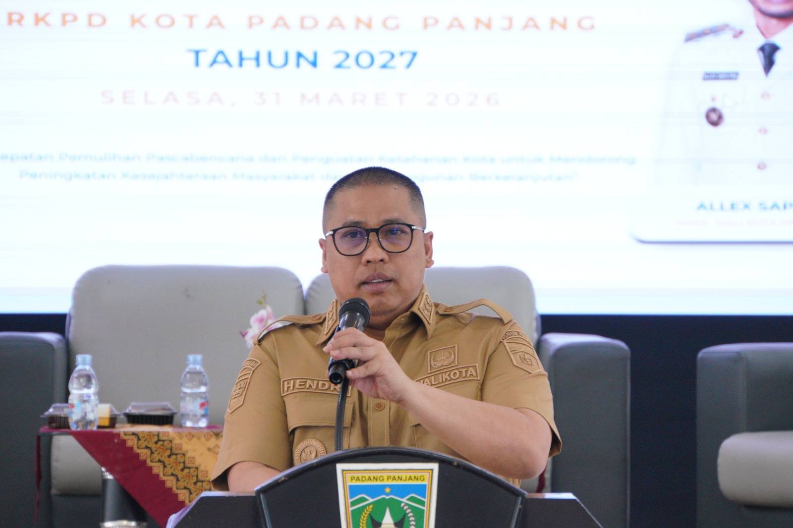 PADANG PANJANG, dutametro.com — Pemerintah Kota Padang Panjang mulai menyusun arah pembangunan 2027 melalui Musyawarah Perencanaan Pembangunan (Musrenbang) Rencana Kerja Pemerintah Daerah (RKPD) yang digelar di Balai Kota, Selasa (31/3/2026).